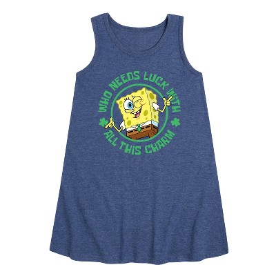 Girls' - SpongeBob Squarepants - Who Needs Luck With This Charm Graphic Sleeveless Aline Dress
