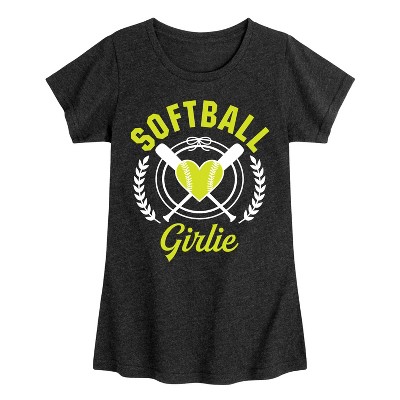 Girls' - Instant Message - Softball Girlie -Youth Girls Short Sleeve T-Shirt Fitted Short Sleeve Graphic T-Shirt
