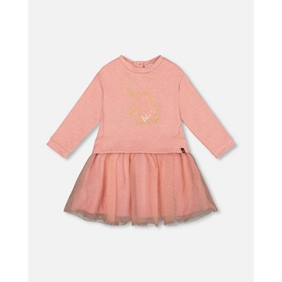 Deux par Deux Girl Bi-Material Belted Dress Beiges