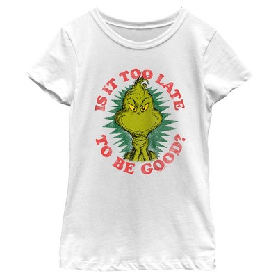 Girl's Dr. Seuss Christmas Grinch Is it too Late T-Shirt