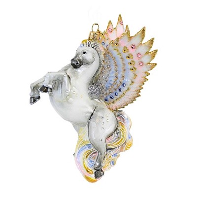 Glitter Lab 7.25 In White Pegasus Ornament Christmas Tree Ornament , Hand Painted Embellished (1PC)