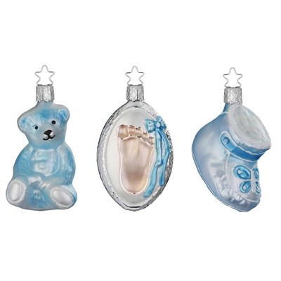 Inge Glas 3.0 Inch Welcome Baby Blue Set/3 , Bootie Footprint Teddy Bear (3PC)