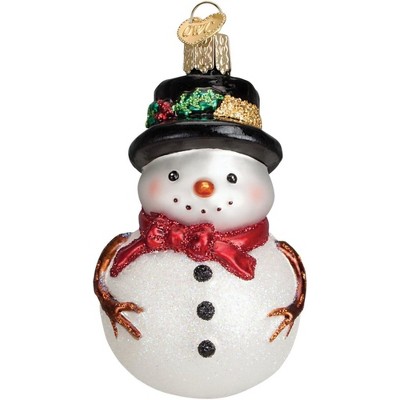 Old World Christmas Blown Glass Ornament for Christmas Tree, Red Bow Holly Hat Snowman