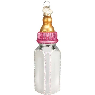 Old World Blown Blown Glass Ornament for Christmas Tree, Girl Baby Bottle