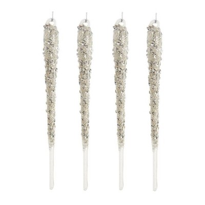 Kurt Adler Glass Ornaments for Christmas Tree, Icicles with Silver Glitter, Assorted (Pack of 4)