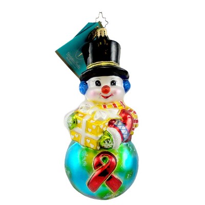 Christopher Radko 6.0 Inch Global Concern Christmas Tree Ornament , Ornament Snowman Aids Charity (1PC)