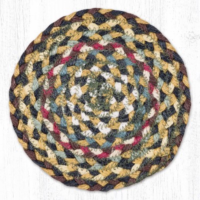 Earth Rugs Fir/Ivory Jute Large Coaster – 7" Round Braided Table Mat, Farmhouse Country Style
