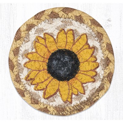 Earth Rugs Sunflower Round Large Coaster – 7"x7" Rustic Farmhouse Floral Accent