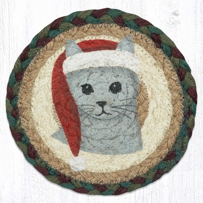 Earth Rugs Holiday Theme Cat in Santa Hat Round Coaster 7" Rustic Christmas Style