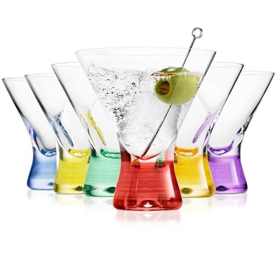 BENETI Colored Stemless Martini Glasses Set of 6, 8oz, Made in Europe