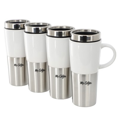 Mr. Coffee Travertine 4 Piece 16 Ounce Stoneware and Stainless Steel Travel Mug With Lid in White