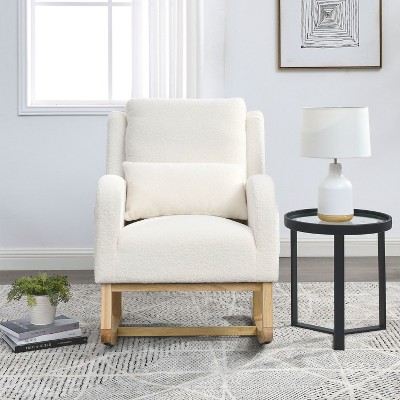 Racxily Off White Teddy Fabric Rocking Chair