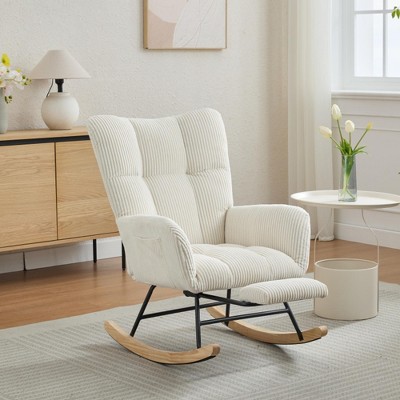 Corduroy Glider Rocking Chair with Solid Wood Frame and Ergonomic Design