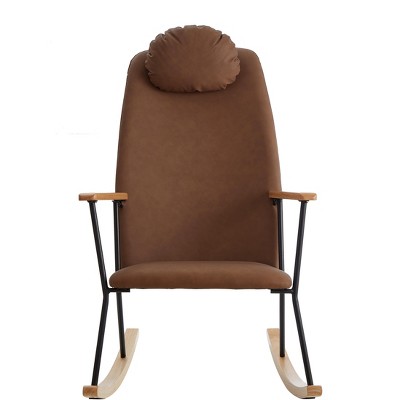 Reclining Japanese-Style Lazy Rocking Chair with Side Pocket and High Backrest