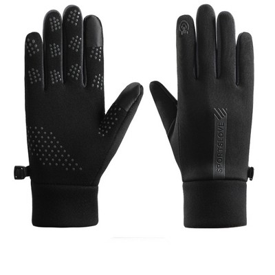 Keep hands feeling warm & cozy with winter gloves & mittens for men & women. From fleece, softshell, leather & cashmere-lined gloves for your cold-weather wardrobe to insulated warm gloves & Thermarator gloves that use electricity to radiate heat, there are plenty of options to stay snug. Check in-store or browse Target.com to view all kinds of liner gloves, vinyl gloves & winter mittens to waterproof, ski gloves. Midweight gloves with a soft Sherpa lining or fleece lining help keep hands warm during travel, commute or errands. Consider adding gloves with a moisture-wicking lining to your gym bag. They help keep hands dry during workouts or outdoor activities. Cable-knit or knit gloves are soft, stretchy & perfect for every day. Whereas snow-proof, water-resistant gloves are great for all-weather wear & keep hands cozy on snowy, chilly or rainy days. Besides must-haves, invest in a pair of women’s puffer gloves or leather gloves to add a trendy vibe to outfits. Gloves are just the thing to keep your accessory game strong & complete outfits in style. Fingerless gloves offer practicality & style, making them perfect for driving or typing on your laptop or phone. You can even go for touchscreen-compatible gloves with ridges on fingertips for better grip & easy smartphone use.