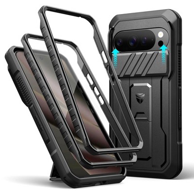 Dexnor for Google Pixel 9 Pro Case with Slide Camera Cover & Built-in Screen Protector & Heavy-Duty Kickstand,Full-Body Protective Cover,Black
