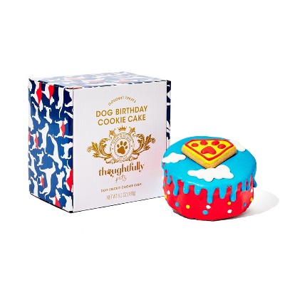 Thoughtfully Pets, Blue Dog Happy Birthday Mini Cookie Cake, Peanut Butter Flavored, Hand Decorated Hollow Biscuit Dog Treat Cake