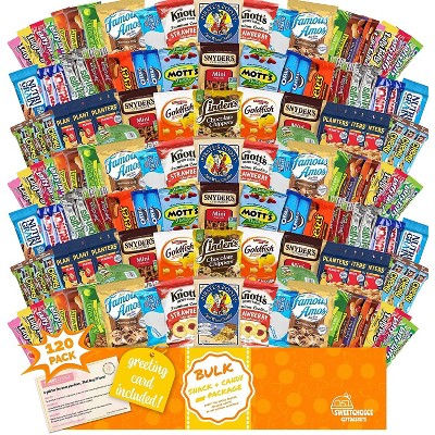 Care Package (120 Count) Variety Snacks Gift Box - College Students, Military, Work or Home - Chips Cookies & Candy! Sweet Choice