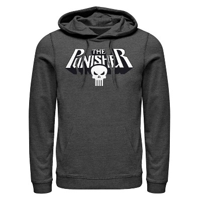 Men's Marvel Punisher Skull Text Logo Pull Over Hoodie