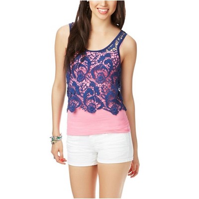 Aeropostale Womens Sheer Crochet-front Tank Top