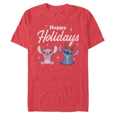 Mens Lilo & Stitch Happy Holidays Angel and Stitch T Shirt