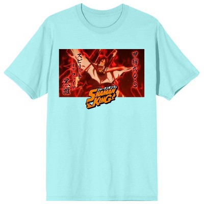 Shaman King Hao Asakura Fiery Background Crew Neck Short Sleeve Celadon Men's T-shirt
