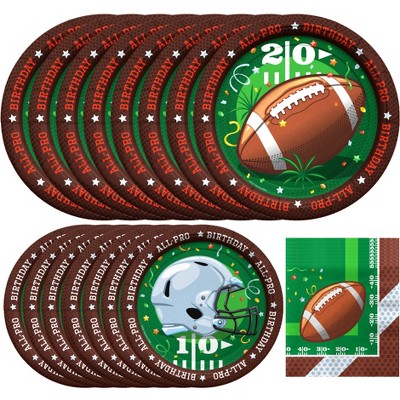 Treasures Gifted Football Birthday Party Supplies Dinnerware Classic Set for 16 Guests