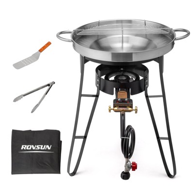 ROVSUN 23" Concave Comal Set with 80,000BTU Propane Stove, Stainless Steel Discada Disc Cooker with Burner Stand for Backyard & Outdoor Cooking Frying