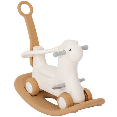 Qaba 4 in 1 Rocking Horse for Toddles 2-5 Years, Baby Ride on Horse with Detachable Push Handle & Balance Board
