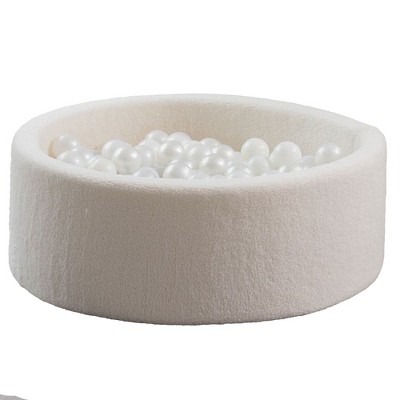KIDKII Round Ball Pit Soft Teddy Indoor Play Toy for Toddlers, 200 Balls, Cream