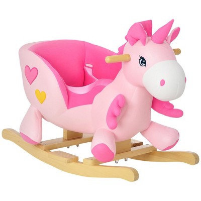 Qaba Baby Rocking Horse, Ride on Unicorn with 32 Songs, Toddler Rocker Toy with Wooden Base Seat Safety Belt for 1.5-3 Year Old, Pink