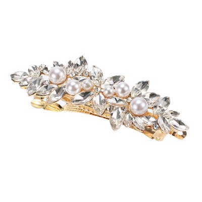 Unique Bargains Women's Rhinestone Faux Pearl Hair Barrettes 1 Pc