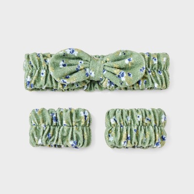 Hair Headwrap with Cuffs Set 3pc - Wild Fable™ Green Floral