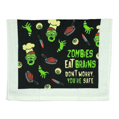 Zombies Eat Brains Dont Worry Youre Safe Funny Undead Tea Towel - Crazy Dog Tea Towel For Halloween Season Zombies Eat
