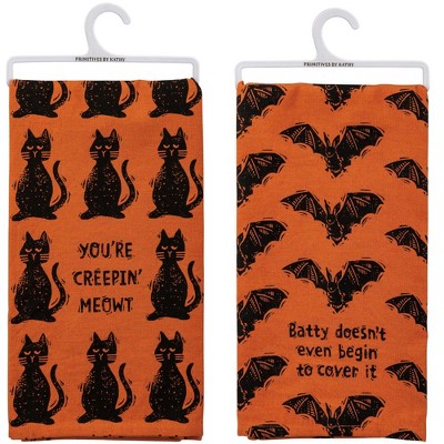 Primitives By Kathy 26.0 Inch Batty Creepin' Meow Kitchen Towels Halloween Hand Towel Set , (2PC)