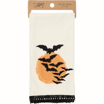 Primitives By Kathy 28.0 Inch Happy Halloween Dish Towel Halloween Hand Towel , Hanging Loop Halloween Decor Bats Moon (1PC)