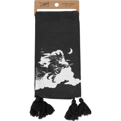 Primitives By Kathy 28.0 Inch Flying Witch Kitchen Towel Halloween Hand Towel , Tassels Moon Clouds (1PC)