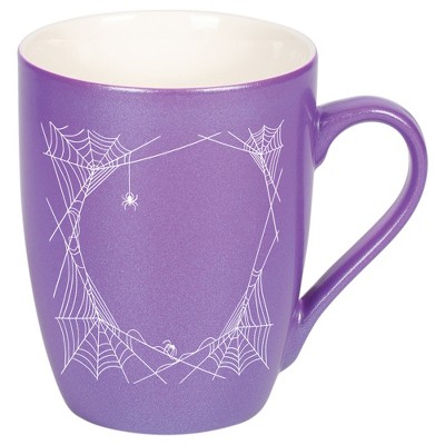 Elanze Designs 10 Ounce Ceramic Decorative Laser Engraved Giftable Novelty Tea Coffee Cup Mug Passion Purple Halloween Spooky Spiderweb