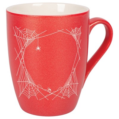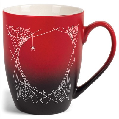 Elanze Designs 12 Ounce Ceramic Decorative Laser Engraved Giftable Novelty Tea Coffee Cup Mug Red and Black Halloween Spooky Spiderweb