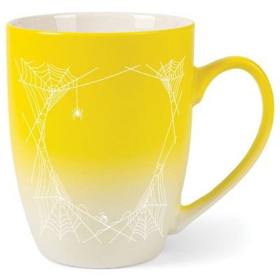 Elanze Designs 12 Ounce Ceramic Decorative Laser Engraved Giftable Novelty Tea Coffee Cup Mug Yellow and White Halloween Spooky Spiderweb