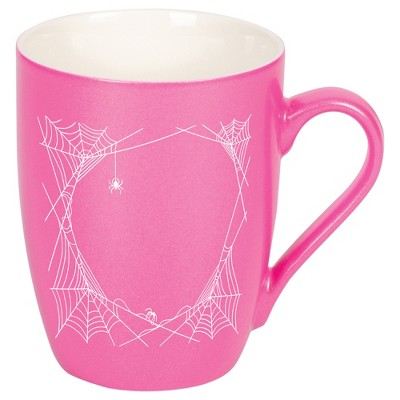 Elanze Designs 10 Ounce Ceramic Decorative Laser Engraved Giftable Novelty Tea Coffee Cup Mug Princess Pink Halloween Spooky Spiderweb