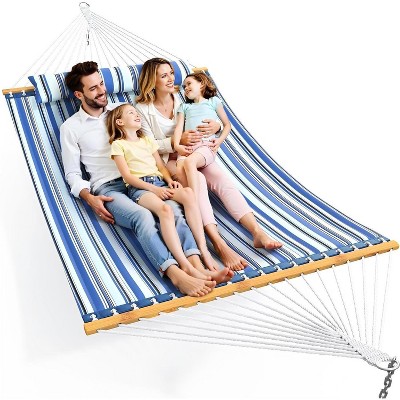 Plus, you can even find one that is spacious enough to fit two people or even your furry friends. Make the most out of time spent outdoors, Take your hammock on all of your adventures and always have the perfect spot to take a restful nap.