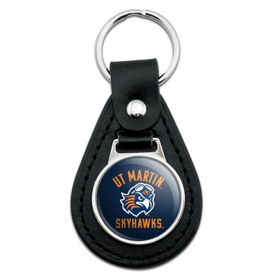 University of Tennessee Martin Skyhawks Logo Black Leather Keychain