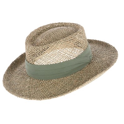 CTM Unisex White Straw Gambler Hat with Hatband