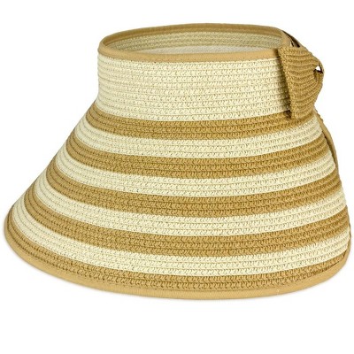 Magid Straw Striped Color Block Roll Up Visor
