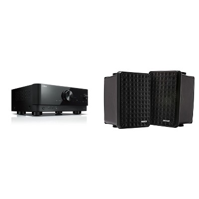 Yamaha RX-V4ABL 5.2-Channel AV Receiver with 8K HDMI and MusicCast w/ Kicker KB6B 2-Way Full Range Indoor Outdoor Speakers (Pair) Weatherproof Spea...