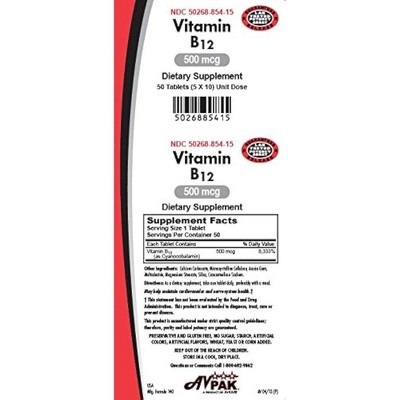 AvPak Vitamin B12 Tablet 500mcg - 50 Count