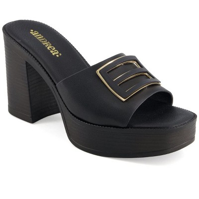 Complete casual, formal or dressy looks with trendy women’s heels & pumps. Be it open-toe, dress sandals with high heels or a pair of block heel wedges, the right heels can help elevate any outfit. Check out Target.com or shop in-store to find the latest collection of women’s heels & pumps, from mid-heel t-strap shoes to peep-toe pumps & heeled sandals. Explore a variety of heel heights, from sky-high to kitten heels, to find what works best for you. Low-heel, strappy sandals or square-toe wedges pair great with jeans, jeggings or casual dresses to lend a fashionable vibe to outfits. Pointed-toe curved pumps, clogs or stiletto heels add a little more drama to outfits for bold & edgy looks. Statement heels & pumps are all it takes to turn any outfit from blah to woah! Think high heels in suede or leather with ankle straps, faux-fur or studded accents for a making a stylish appearance.