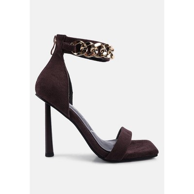 Complete casual, formal or dressy looks with trendy women’s heels & pumps. Be it open-toe, dress sandals with high heels or a pair of block heel wedges, the right heels can help elevate any outfit. Check out Target.com or shop in-store to find the latest collection of women’s heels & pumps, from mid-heel t-strap shoes to peep-toe pumps & heeled sandals. Explore a variety of heel heights, from sky-high to kitten heels, to find what works best for you. Low-heel, strappy sandals or square-toe wedges pair great with jeans, jeggings or casual dresses to lend a fashionable vibe to outfits. Pointed-toe curved pumps, clogs or stiletto heels add a little more drama to outfits for bold & edgy looks. Statement heels & pumps are all it takes to turn any outfit from blah to woah! Think high heels in suede or leather with ankle straps, faux-fur or studded accents for a making a stylish appearance.