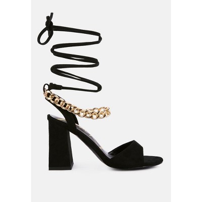 Allegra K Women's Kitten Heel Open Top Lace-Up Sandals